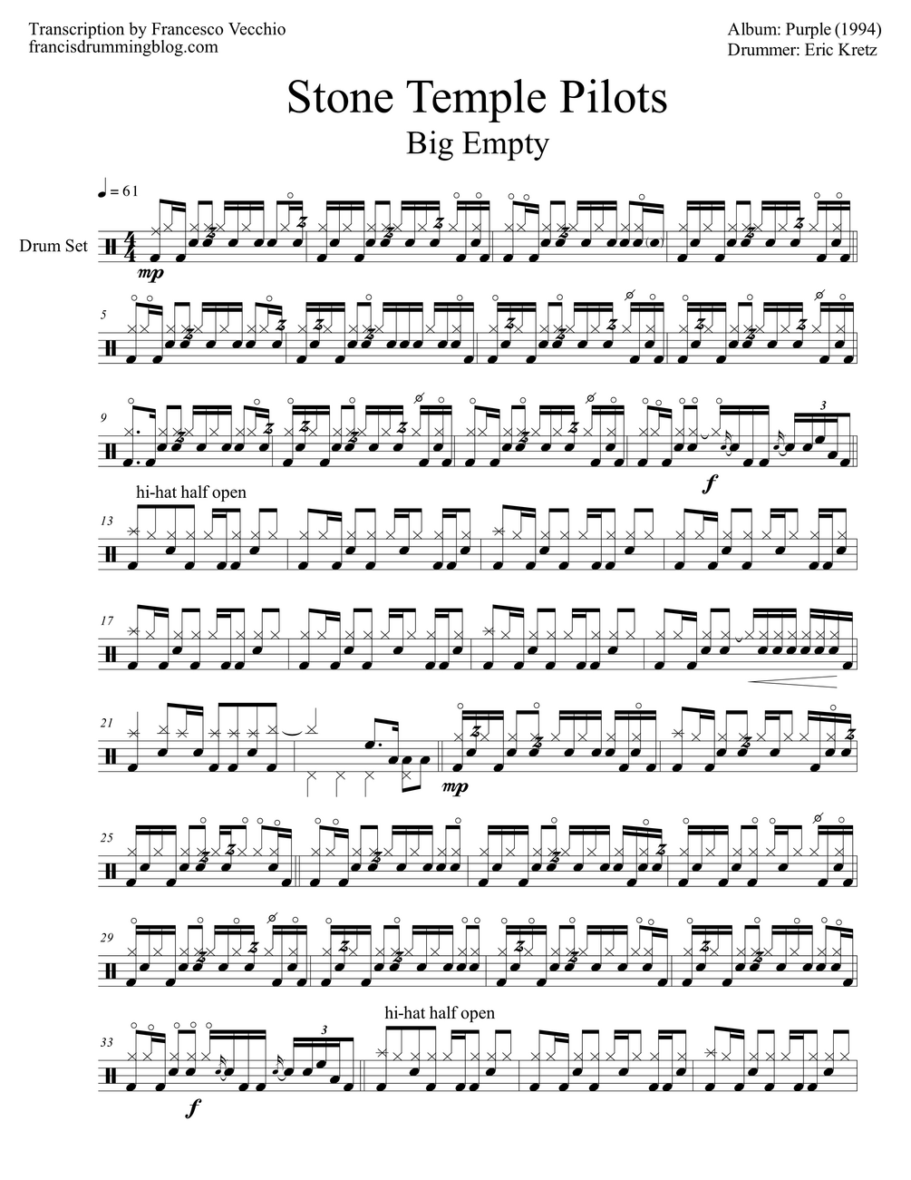 Whether you are a beginner or an experienced drummer looking to delve into Kretz's drumming, this collection serves as an essential resource for understanding and recreating the powerful rhythms that have helped shape the legacy of Stone Temple Pilots. Elevate your drumming!