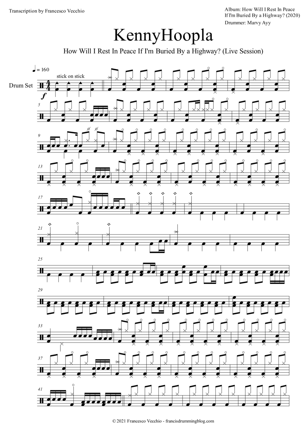 The full drum sheet music for "How Will I Rest In Peace If I'm Buried By a Highway?" by KennyHoopla, from the live session on YouTube: https://www.youtube.com/watch?v=SSlxU7FKdF4